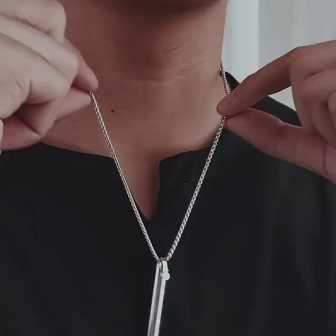 - Chain: Premium 24" Box Chain for a modern, unisex aesthetic.